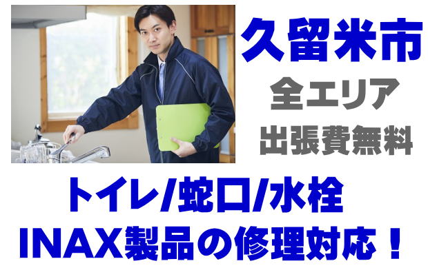 久留米市でINAX製品の修理業者をお探しなら当社までお気軽にお問い合わせください。トイレ便器タンクの故障、便座の修理、蛇口やシャワーの水漏れなどイナックス製品に関するトラブルなら何でもご相談ください。